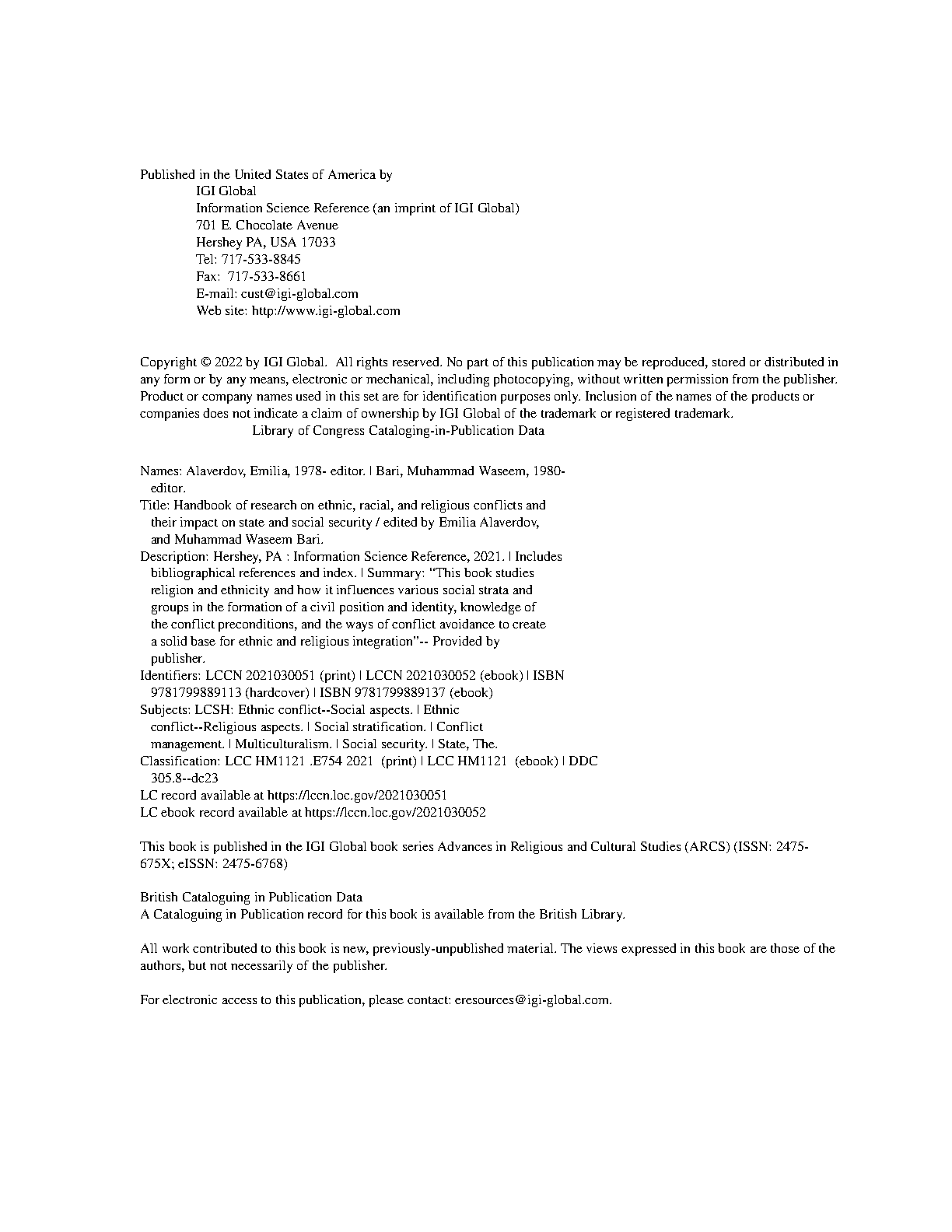 Handbook of Research on Ethnic, Racial, and Religious Conflicts and Their Impact on State and Social Security by Emilia Alaverdov and Muhammad Waseem Bari (1st Edition)