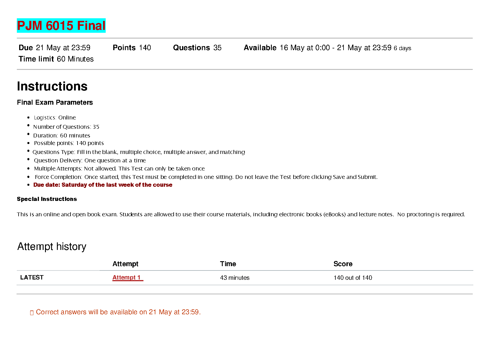 Conquer your PJM 6015 final exam with this comprehensive study guide designed for the 2024/2025 academic year. This resource is meticulously crafted to help students achieve exam success on their first attempt, avoiding costly resits. Prepare effectively using detailed explanations and practice questions mirroring the actual exam format. Pass with confidence!