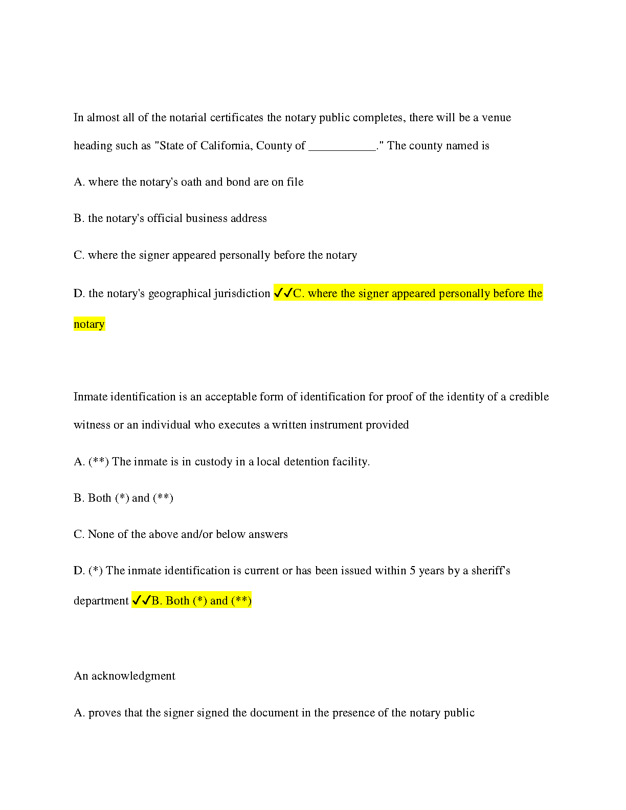 California Notary Public Practice Exam - Multiple Choice with Verified Answers