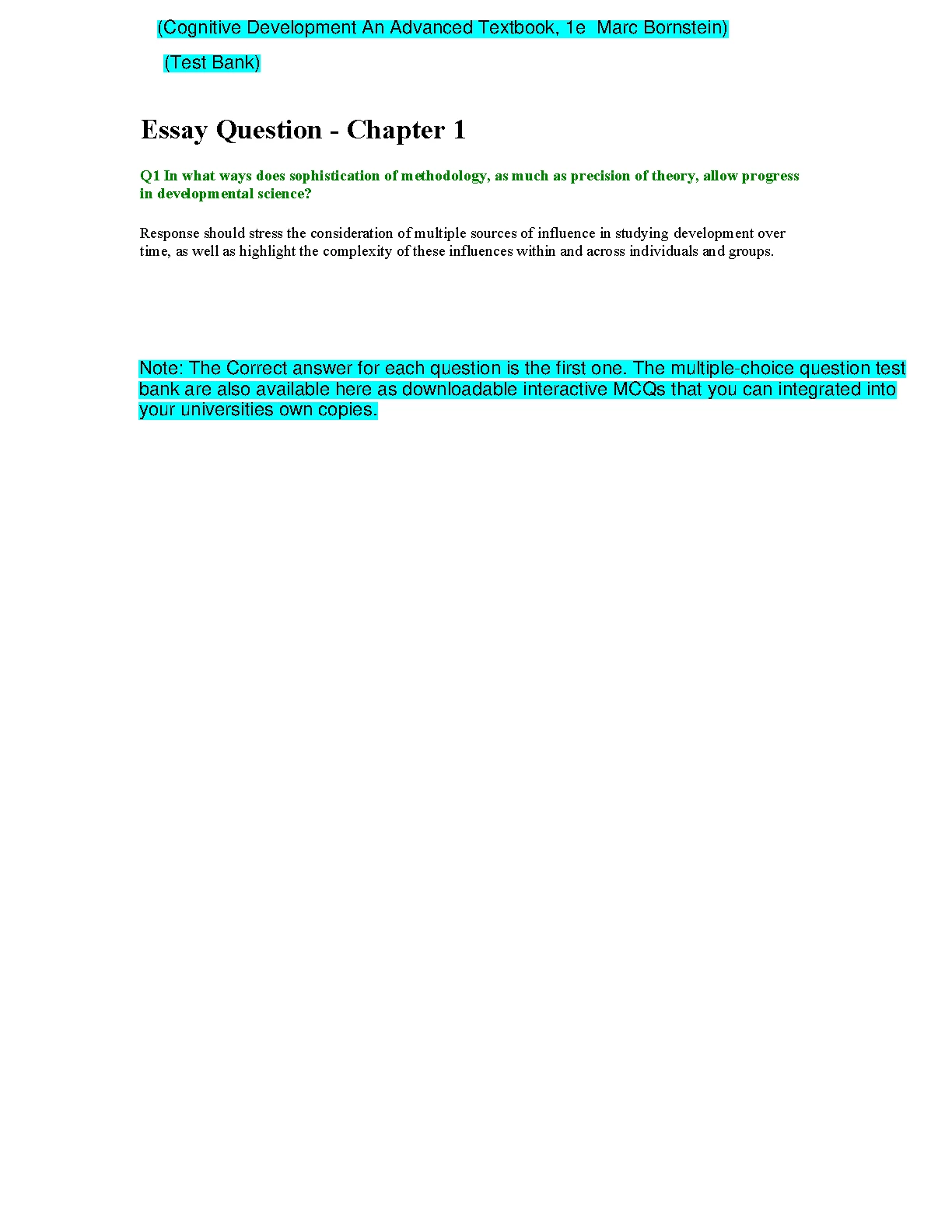 Ace your exams with this comprehensive test bank for Marc Bornstein's Cognitive Development: An Advanced Textbook, 1st Edition. This resource includes interactive multiple-choice questions (MCQs) designed to help you master the key concepts and achieve exam success on your first attempt. Downloadable and easily integrated into university systems.