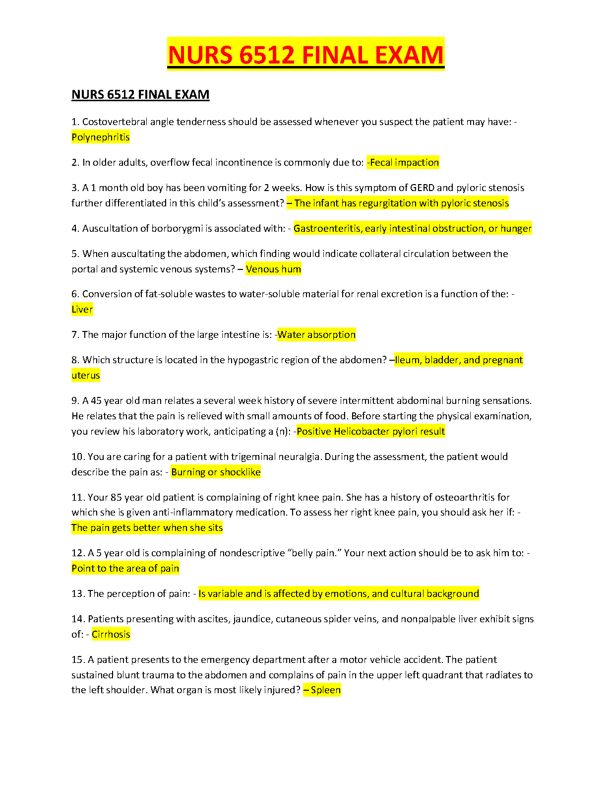 Ace your NURS 6512 final exam with this comprehensive study guide, designed to help students avoid resits and achieve success on their first attempt. This resource covers key concepts and questions, ensuring you're well-prepared for exam day.