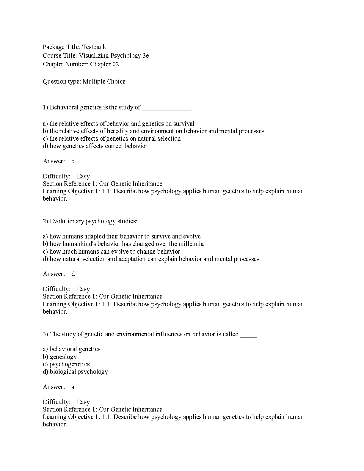 Visualizing Psychology 3e Test Bank: Complete Multiple Choice Questions by David G. Myers