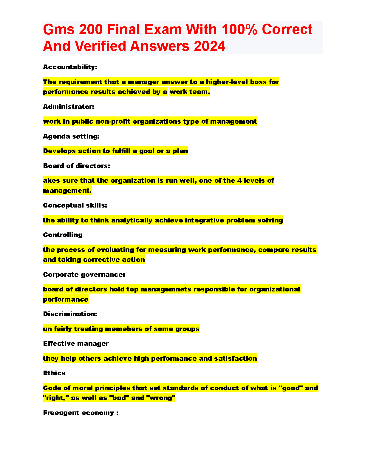 Ace your GMS 200 final exam with this comprehensive guide featuring 100% correct answers and verified solutions for the 2024 academic year. This resource is designed to help students pass their exams on the first attempt, avoiding costly resits. Prepare effectively and confidently.