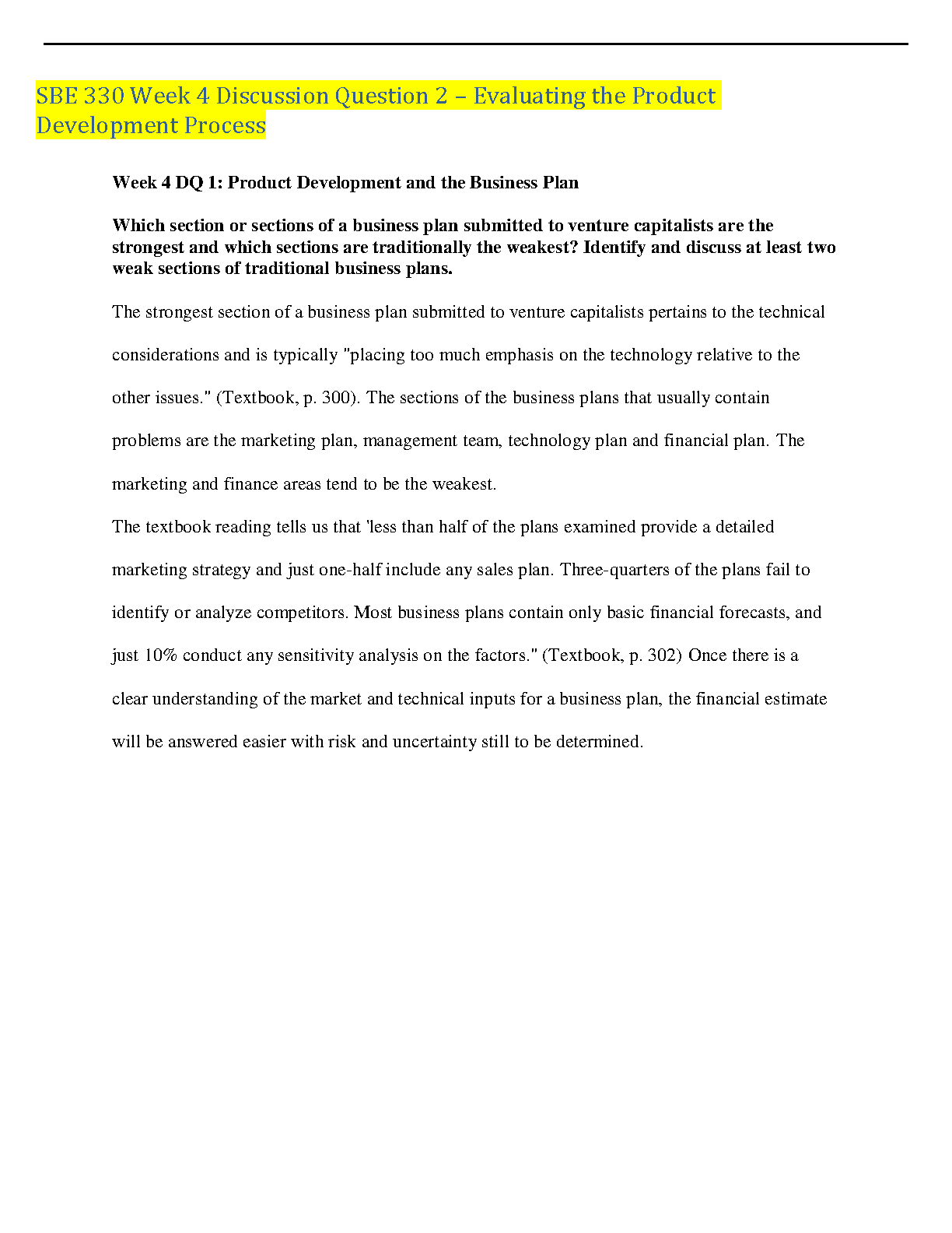SBE 330 Week 4 Discussion Question 2: Evaluating the Product Development Process - 2024/2025 Edition