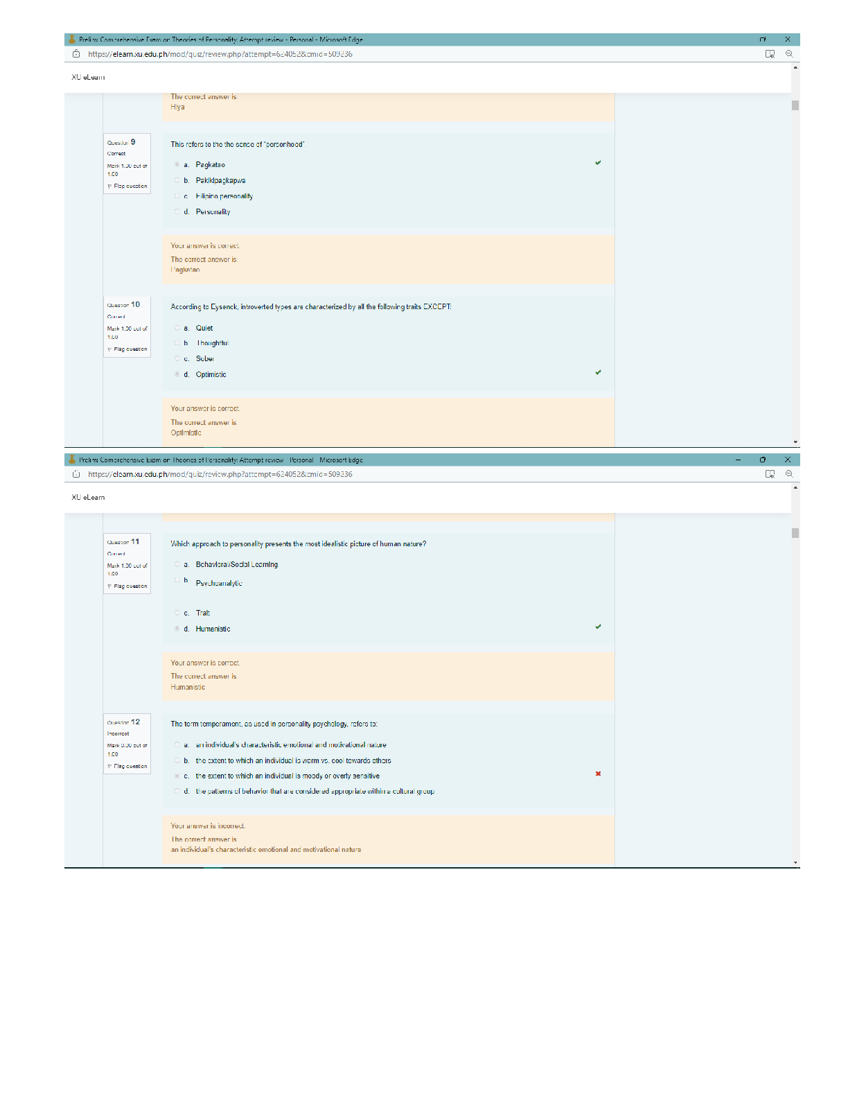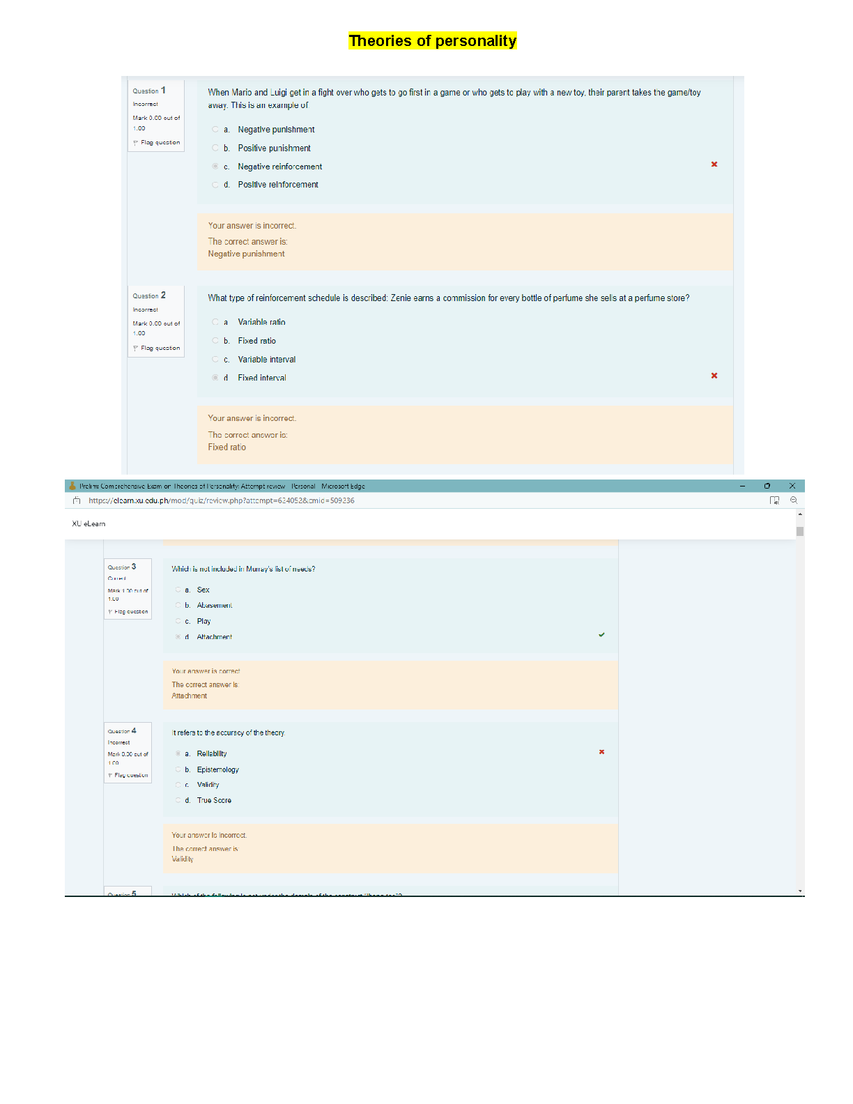 Theories of Personality Quiz Questions and Answers