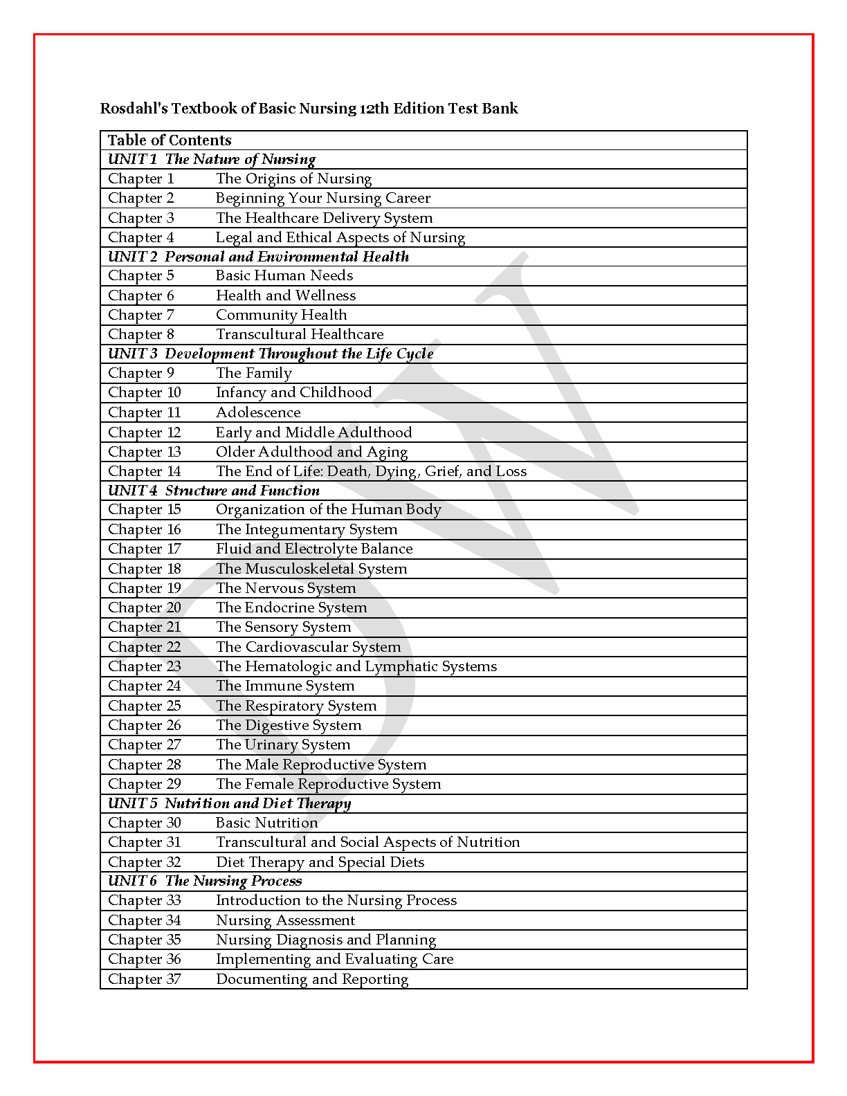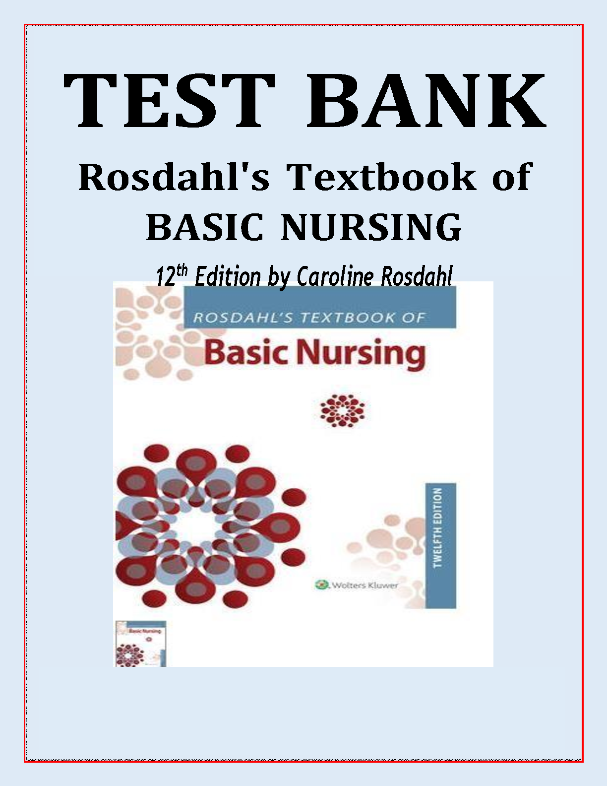 Rosdahl's Textbook of Basic Nursing 12th Edition Test Bank by Caroline Rosdahl