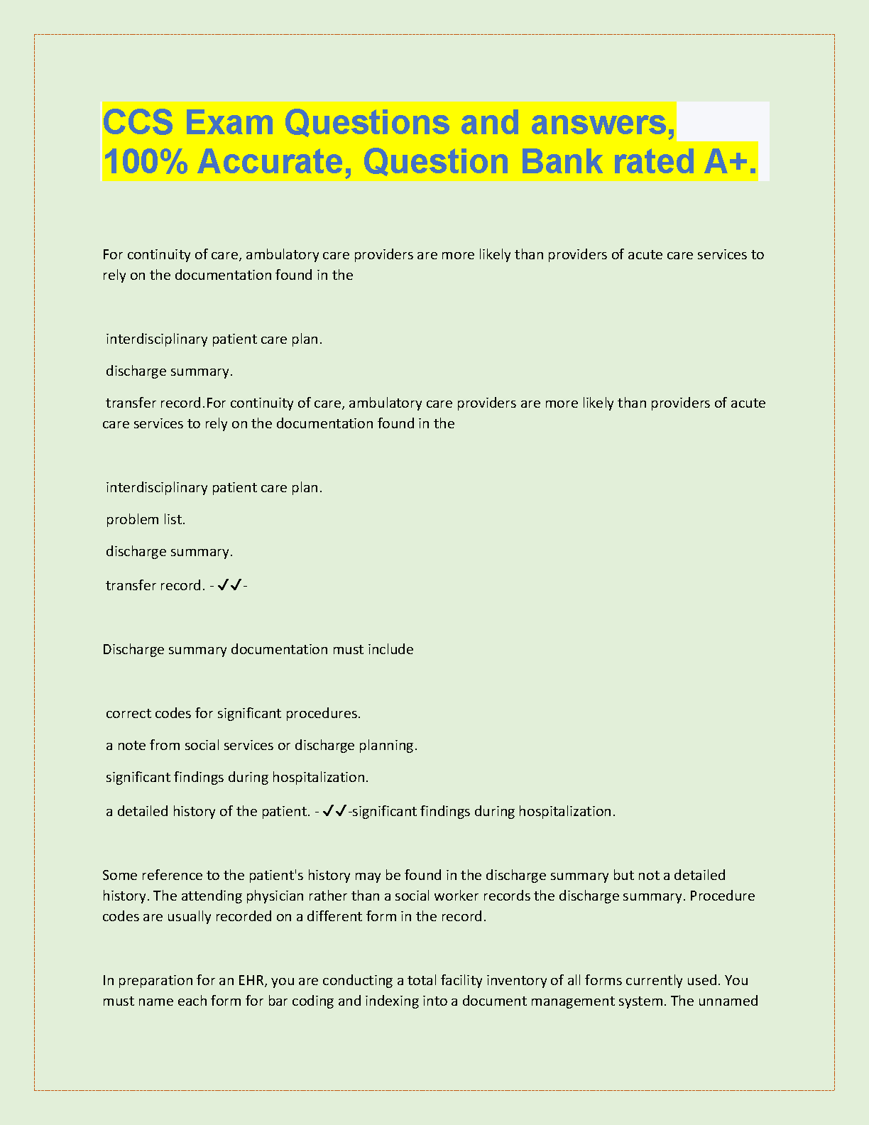 Ace your CCS exam on the first attempt with this comprehensive question bank, meticulously crafted for the 2024-2025 academic year. 100% accurate and A+ rated, this resource ensures you're fully prepared for exam day, avoiding costly resits. Covering key concepts and providing in-depth explanations, this resource is your ultimate guide to success.