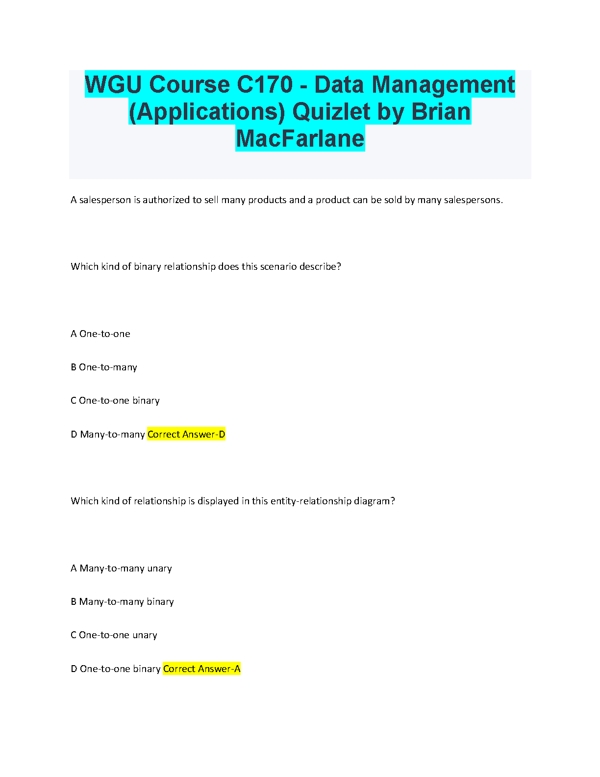 WGU C170 Data Management (Applications) Quizlet: Ace Your Exam with Brian MacFarlane's 2024/2025 Edition