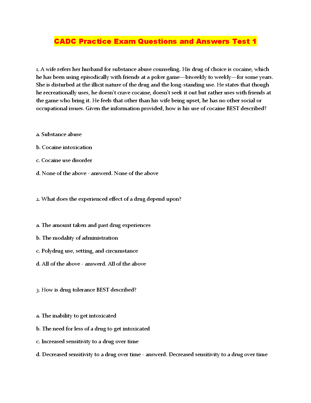 CADC Practice Exam Questions and Answers Test 1: Ace Your Exam with this 2024/2025 Study Guide