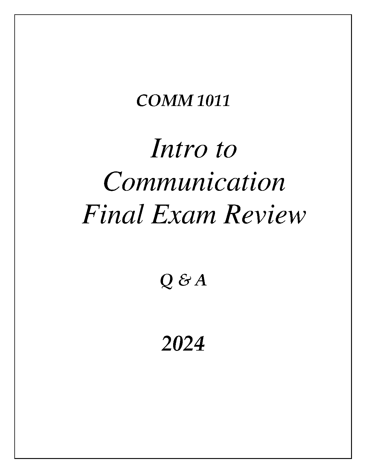 COMM 1011 Intro to Communication Final Exam Review Q&A 2024 Edition