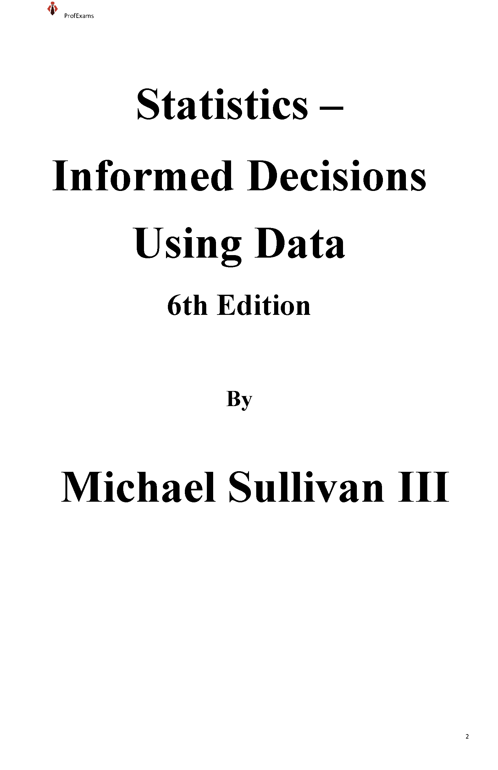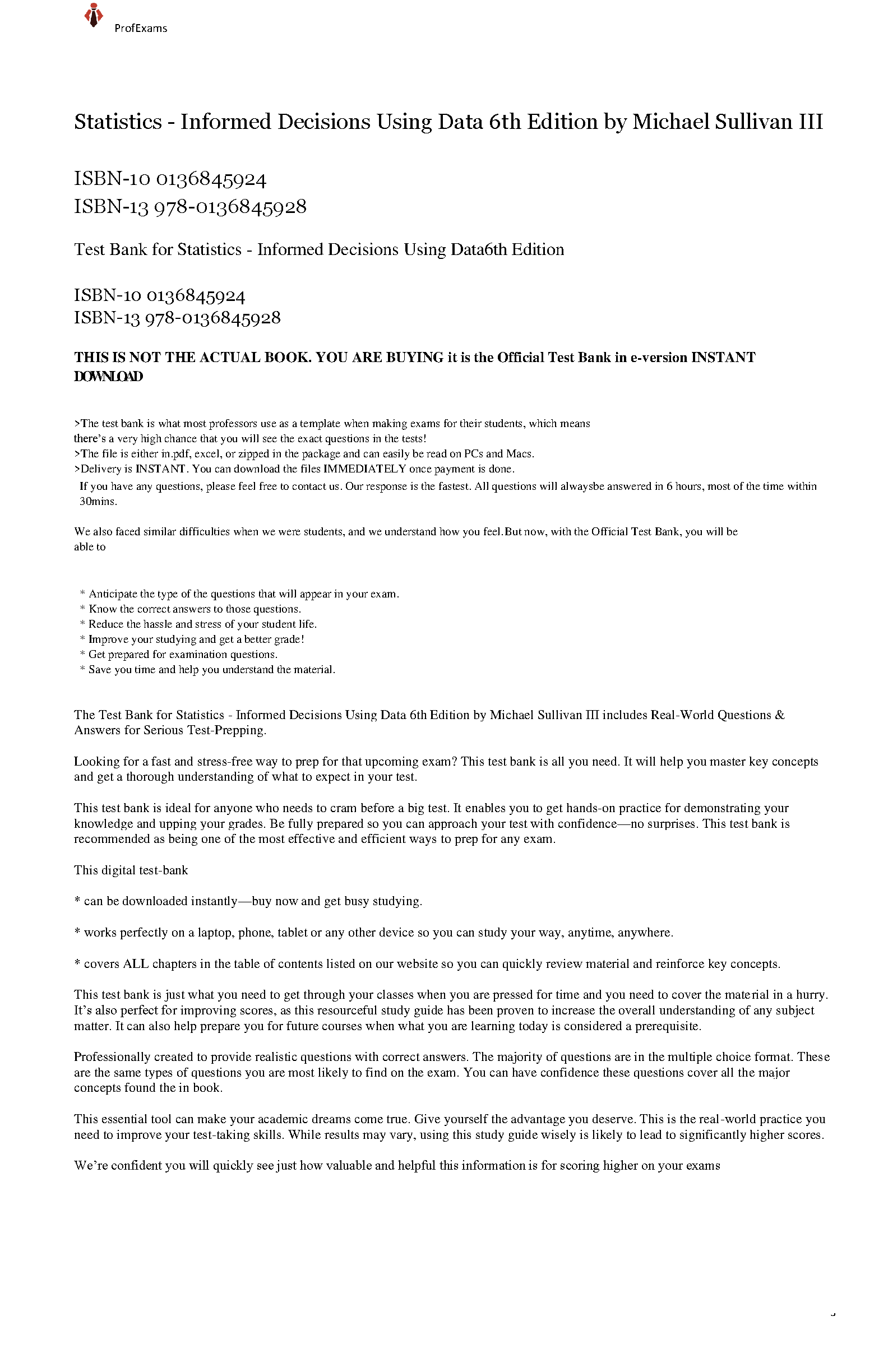 Test Bank for Statistics: Informed Decisions Using Data, 6th Edition by Michael Sullivan III