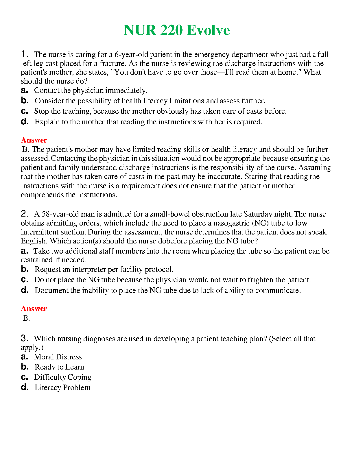 NUR 220 Evolve: Exam Prep for Success - 2024/2025 Edition