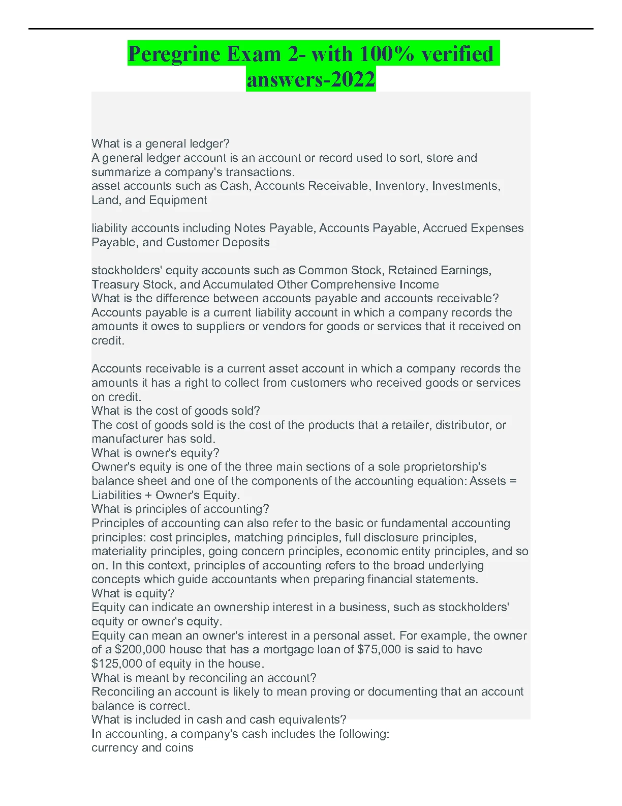 Ace your accounting exam with this comprehensive solution guide for Peregrine Exam 2 (2022 Edition). This resource provides 100% verified answers to help students grasp key concepts and achieve exam success on their first attempt.