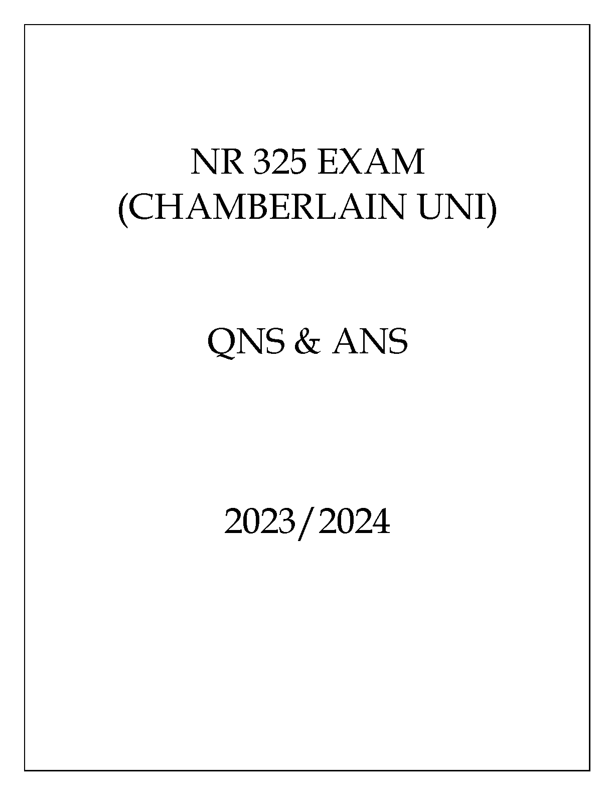 Ace your NR 325 Chamberlain University exam with this comprehensive question and answer guide. Designed for the 2023-2024 academic year, this resource provides in-depth coverage of key concepts, ensuring exam success on your first attempt. Avoid resits and achieve your academic goals!