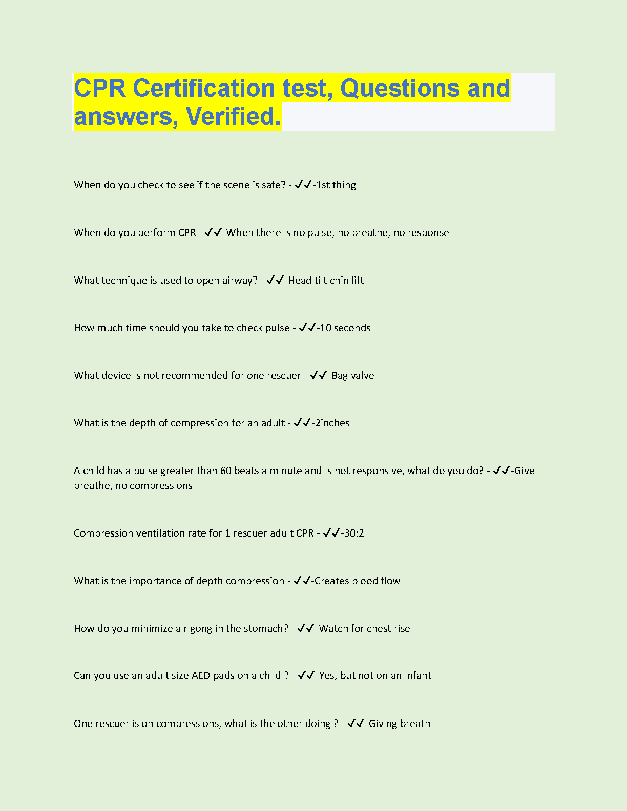 2024-2025 CPR Certification Test Questions and Answers: Verified Guide for First-Time Pass