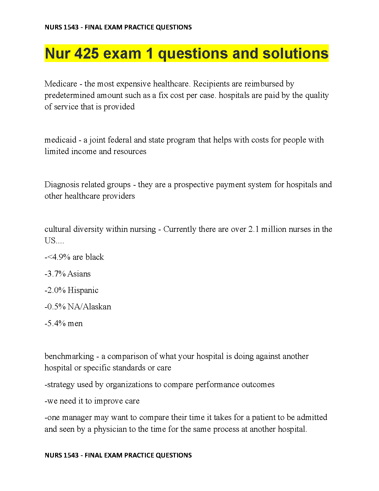 Conquer NUR 425 with this comprehensive guide to Exam 1. This resource provides questions and solutions, helping nursing students achieve exam success and avoid resits. Perfect for the 2024/2025 academic year.
