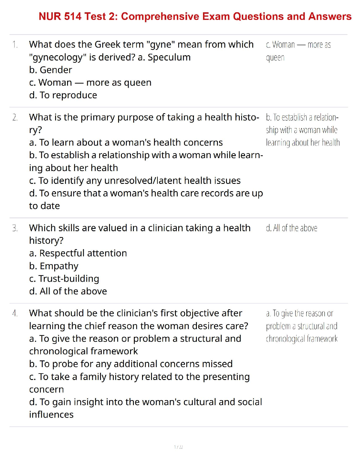 Ace your NUR 514 exam on the first attempt with this comprehensive exam question and answer bank. This resource provides in-depth explanations and analysis for successful exam preparation, saving you time and effort and avoiding costly resits. Ideal for the 2024/2025 academic year.