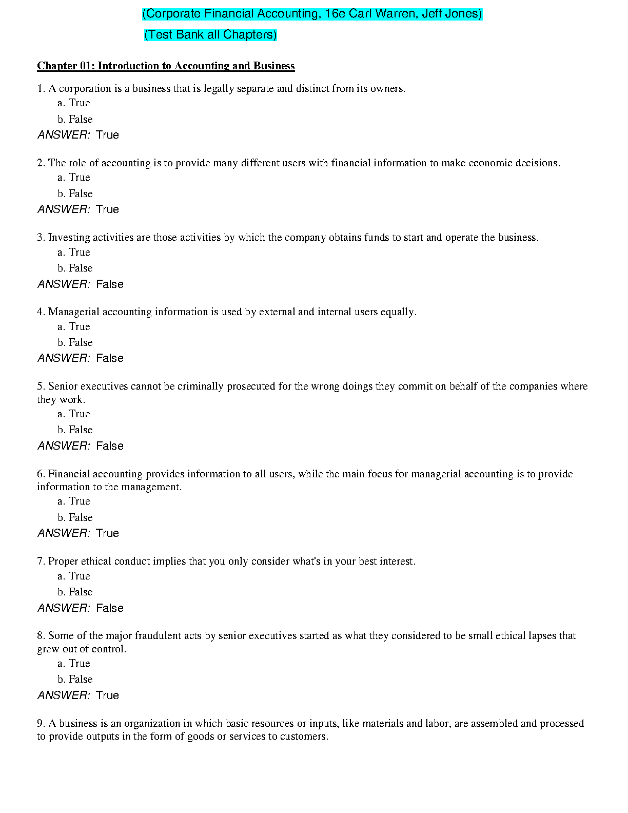 Corporate Financial Accounting 16th Edition Test Bank by Carl Warren and Jeff Jones: Ace Your Exams!