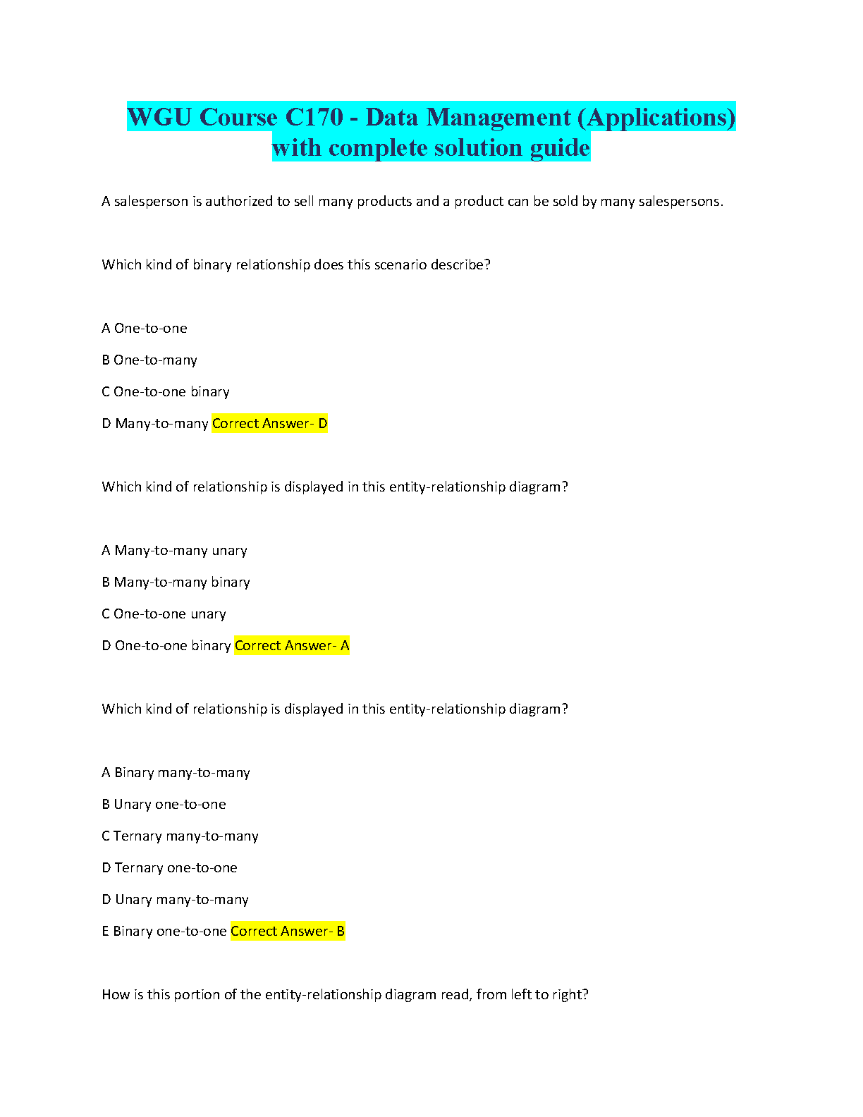 Ace your WGU C170 Data Management (Applications) exam with this comprehensive solution guide. Designed to help students pass on their first attempt, this resource provides complete solutions and explanations, ensuring a thorough understanding of key concepts and avoiding resits. Perfect for the 2024/2025 academic year.