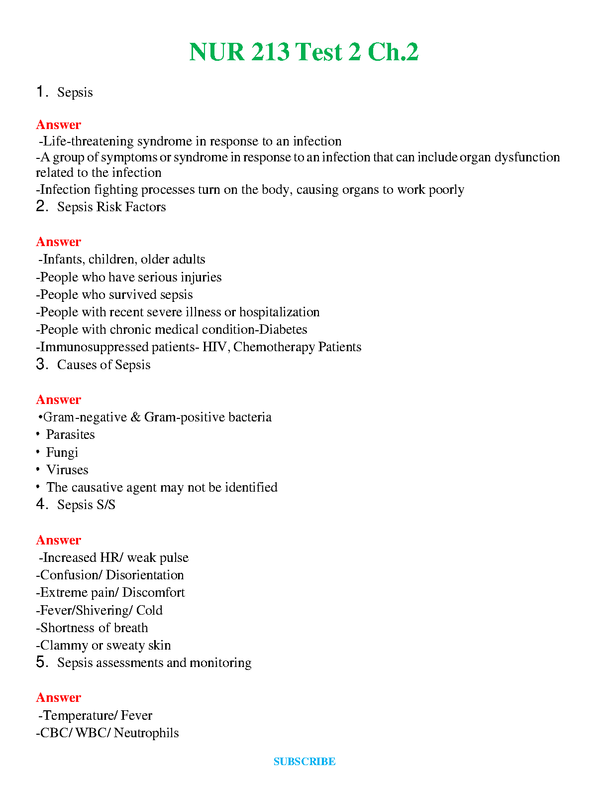 NUR 213 Test 2 Chapter 2: Sepsis - Comprehensive Study Guide for 2024/2025
