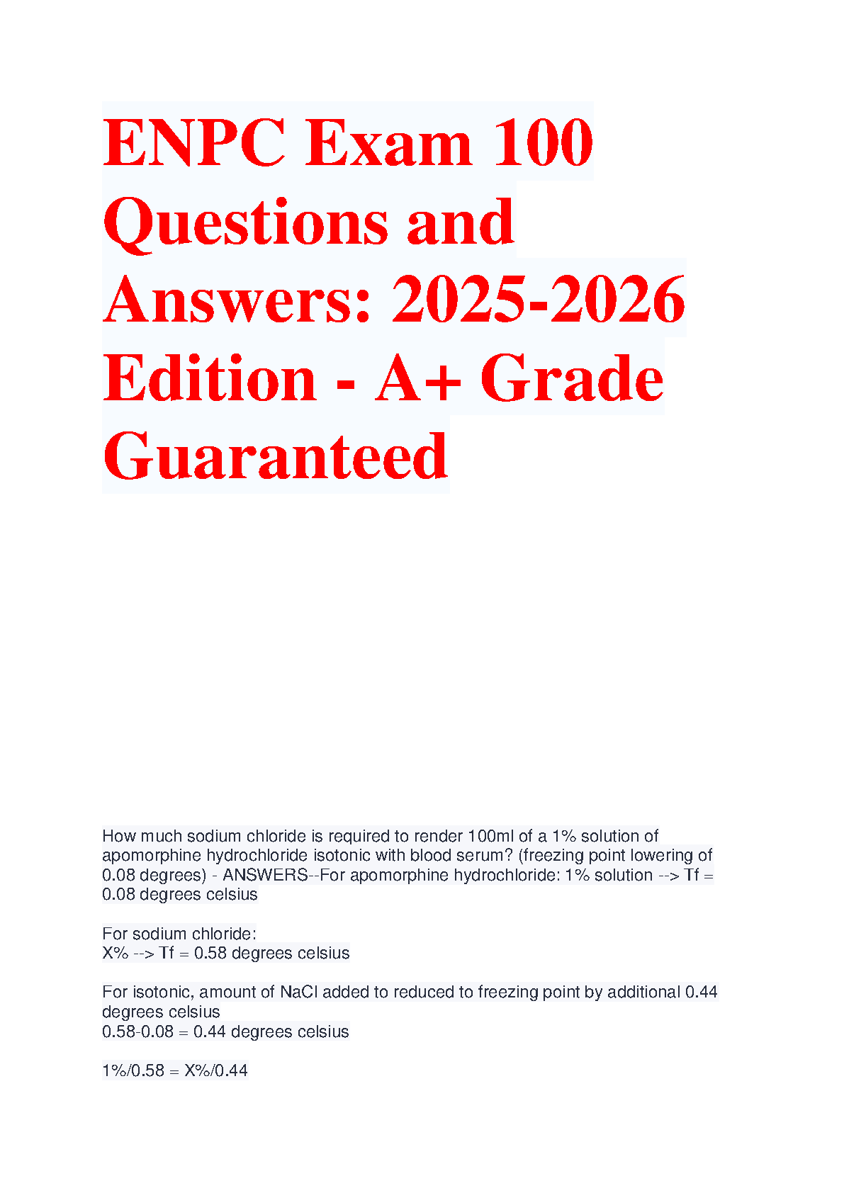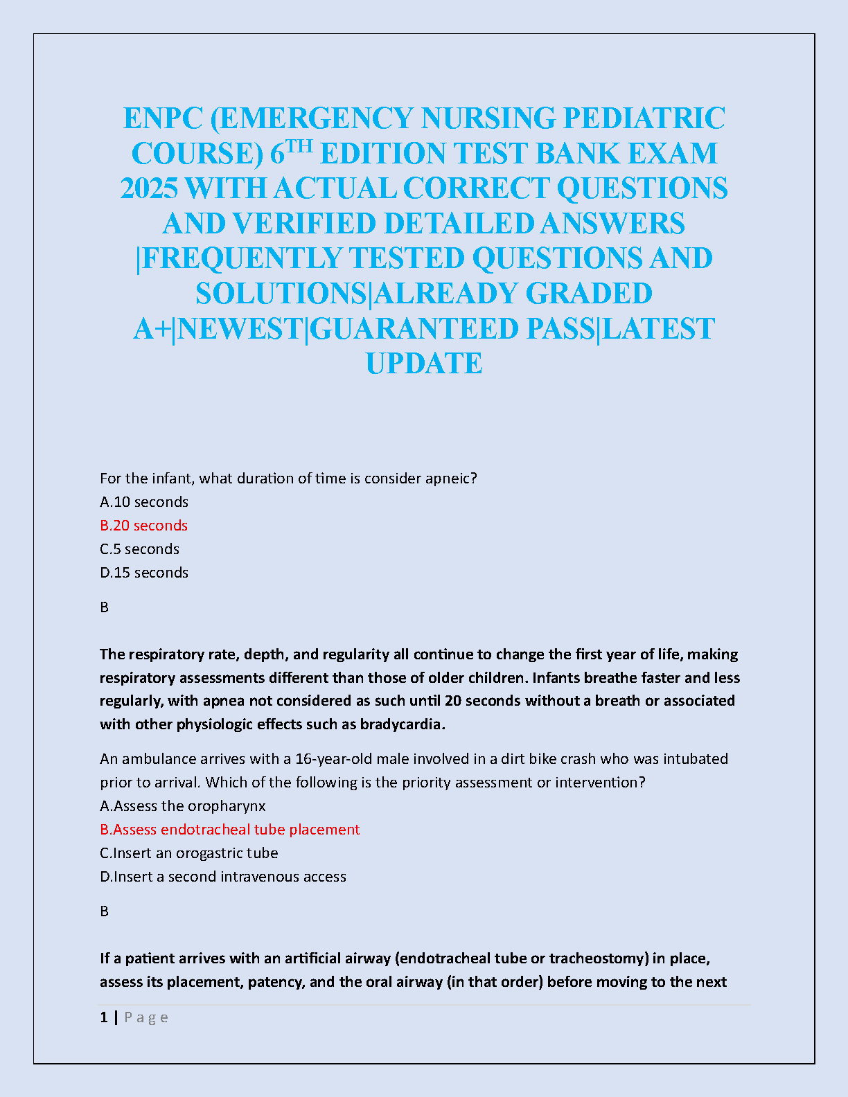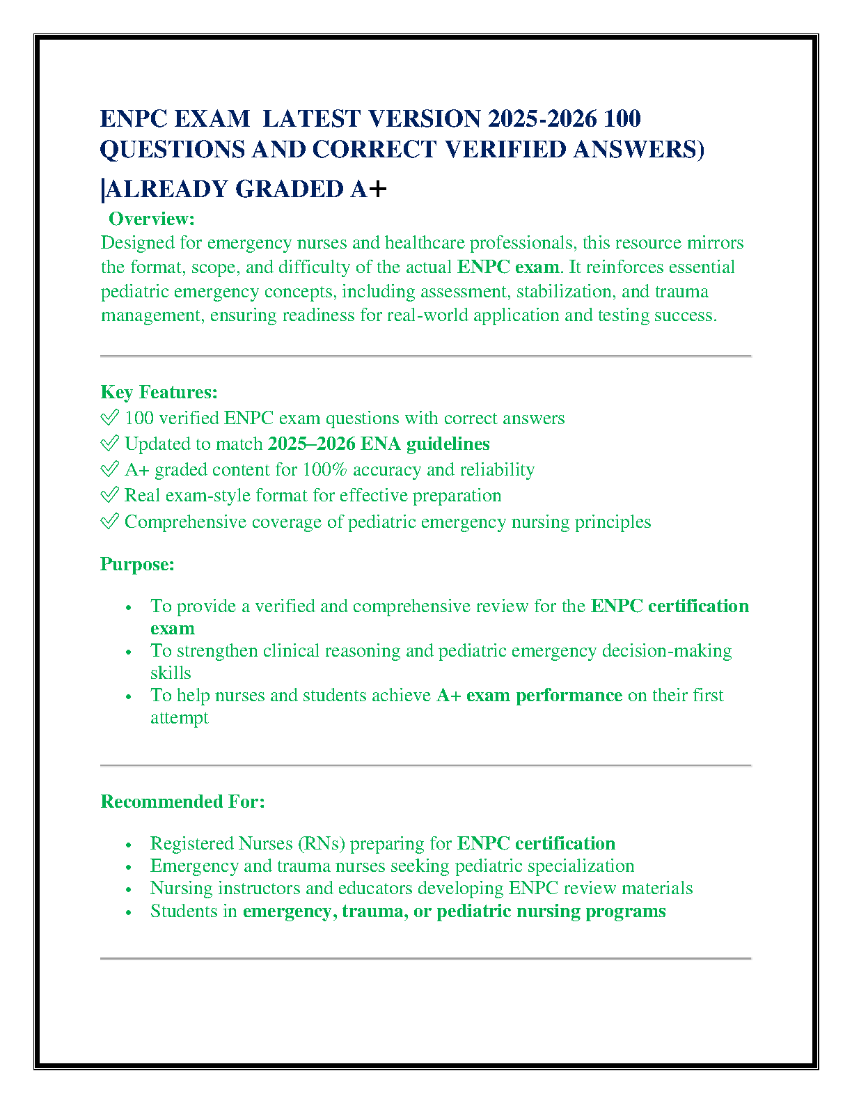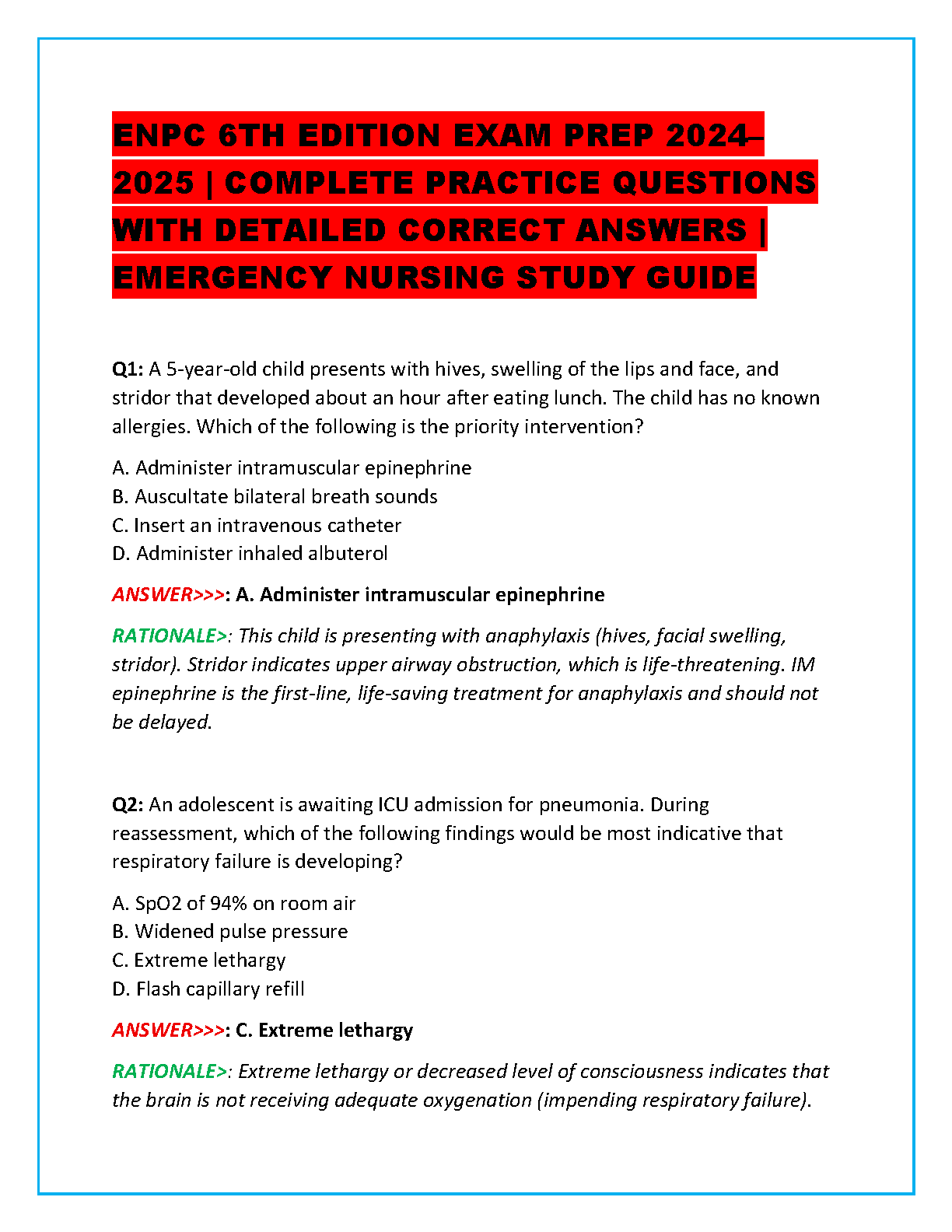 Ace your ENPC exam with this comprehensive study guide featuring 2022 exam answers, rated A+. This resource is designed to help you pass on your first attempt, avoiding costly resits and saving you valuable time. Prepare effectively and confidently for your Emergency Nursing Pediatric Course certification!