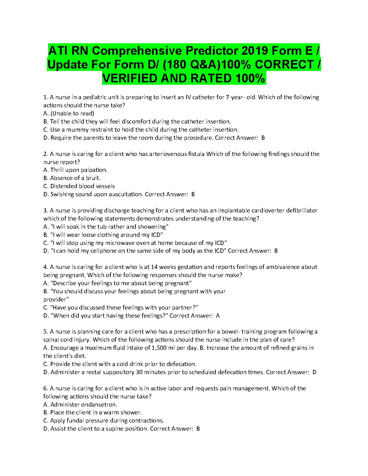 ATI RN Comprehensive Predictor 2019 Form E / Update For Form D/ (180 Q&A)100% CORRECT / VERIFIED AND RATED 100%. DOWNLOAD on www.hackedexams.com INSTANTLY.