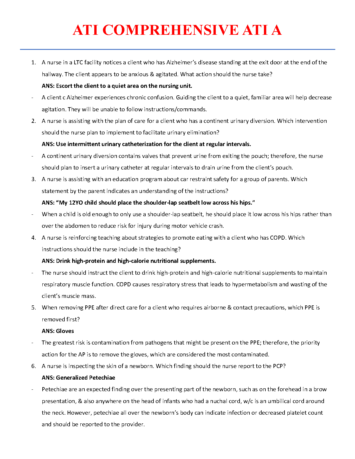 ATI COMPREHENSIVE ATI A.QUESTIONS AND ANSWERS, GRADED A+