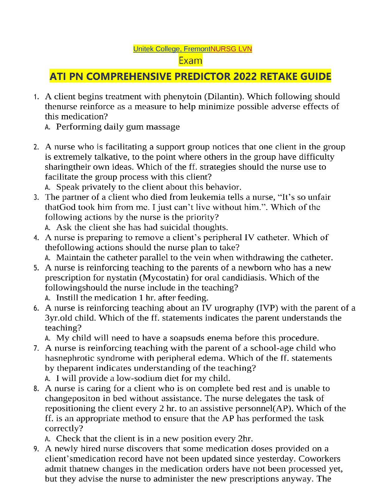 ATI PN COMPREHENSIVE EXIT EXAM.