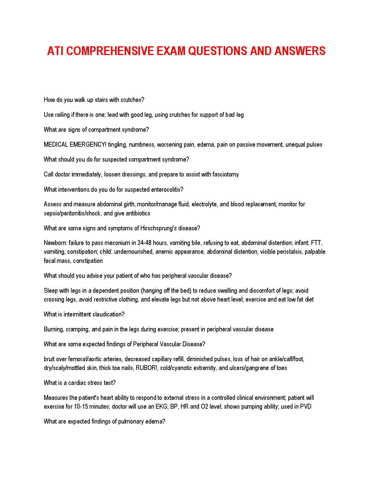 ATI COMPREHENSIVE EXAM QUESTIONS AND ANSWERS RATED A+