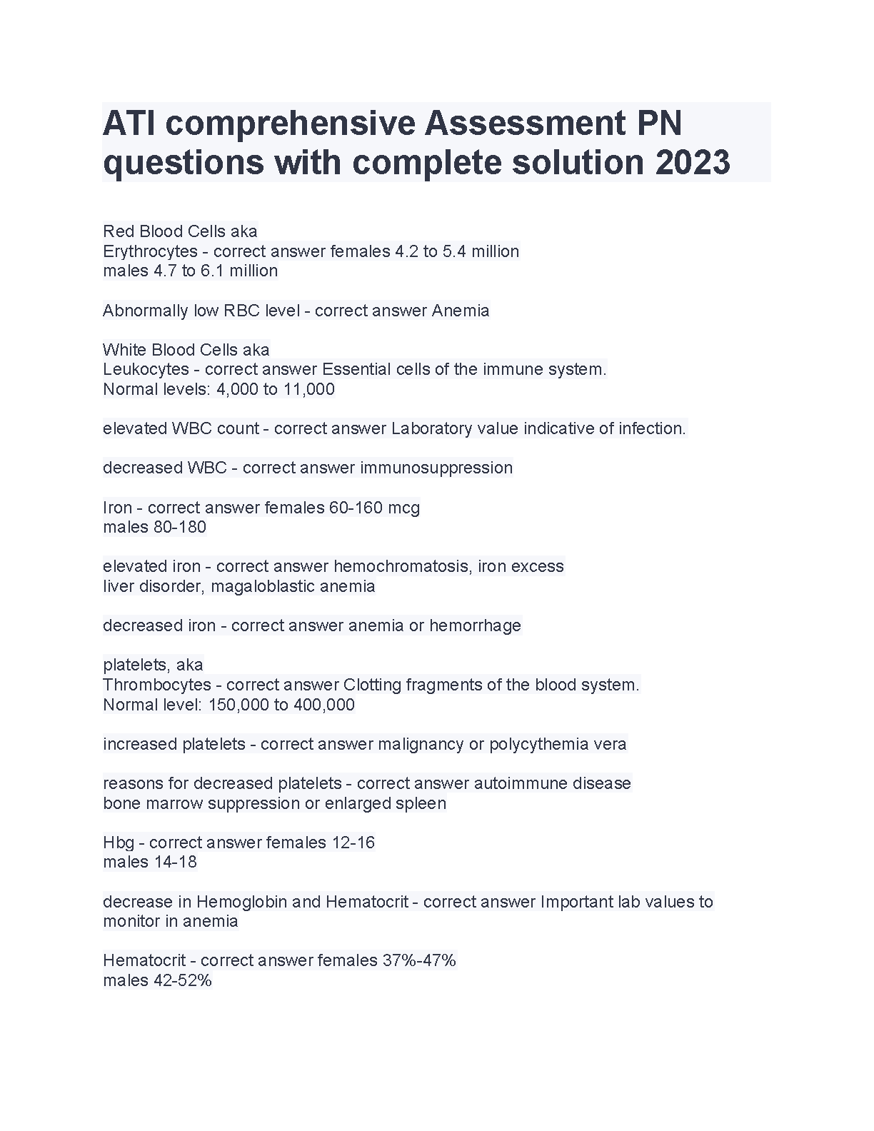 ATI comprehensive Assessment PN questions with complete solution 2023. DOWNLOAD on www.hackedexams.com INSTANTLY.