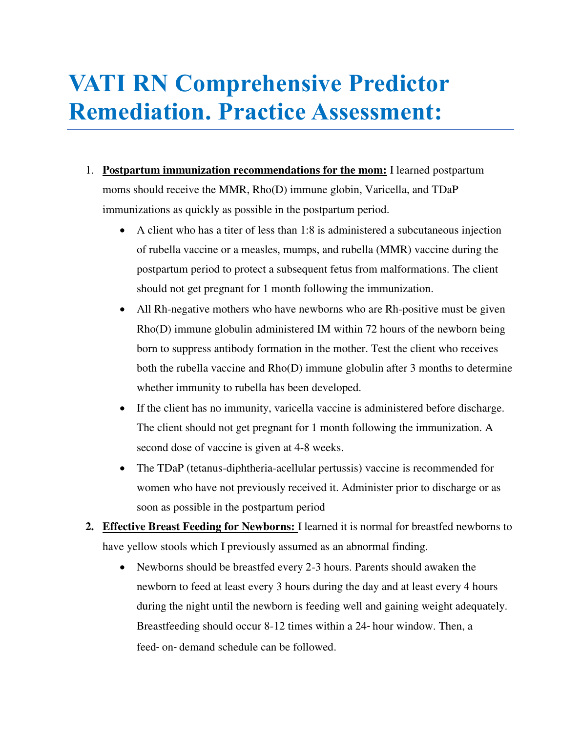 VATI RN Comprehensive Predictor Remediation. Practice Assessment BRAND NEW!!!