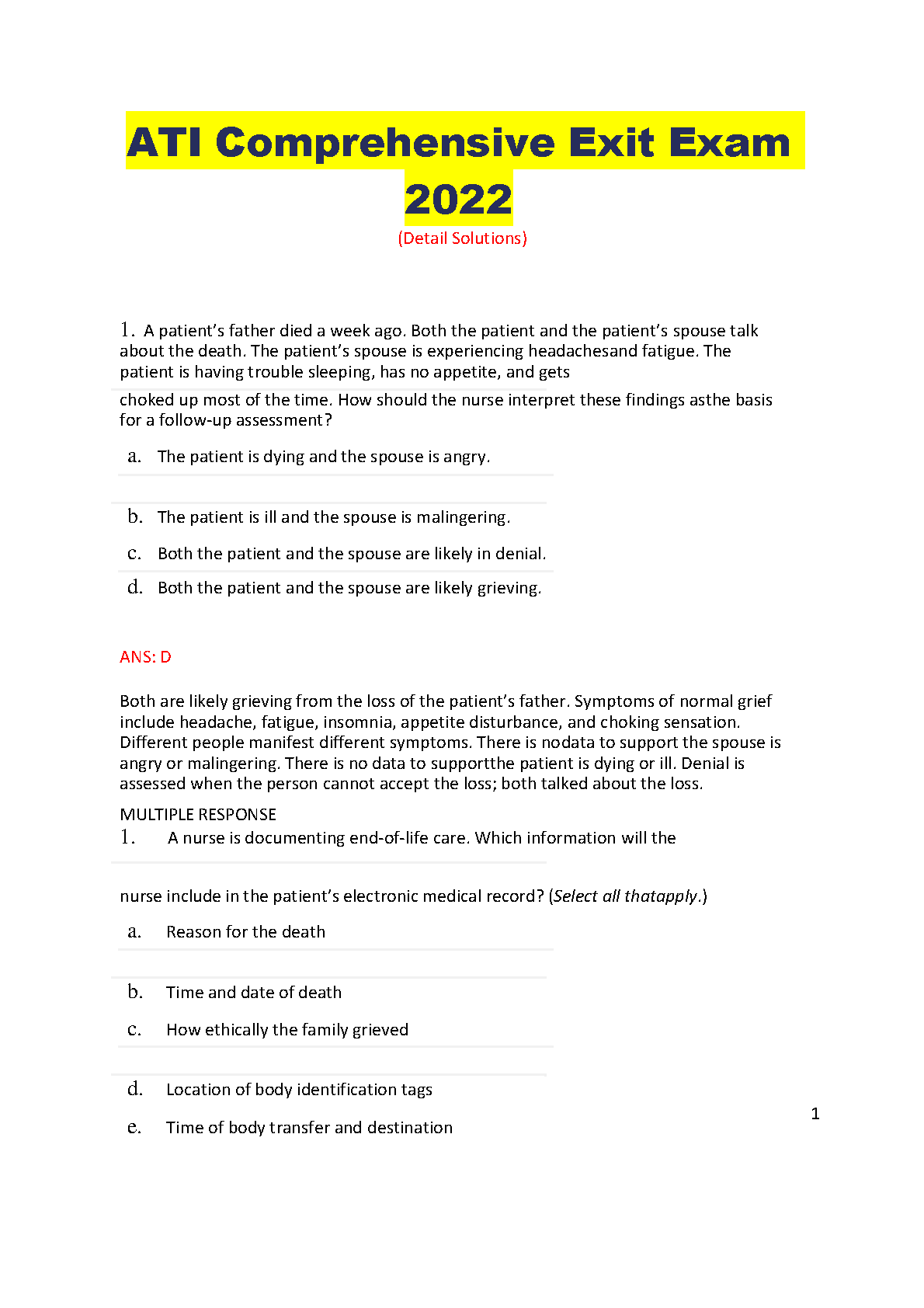 ATI Comprehensive Exit Exam 2022/2024 (Detail Solutions)