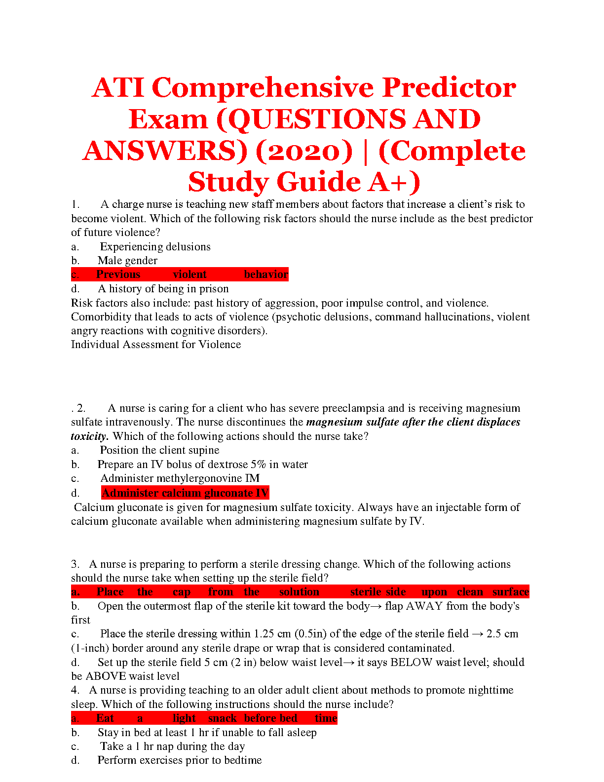 ATI Comprehensive Predictor Exam (QUESTIONS AND ANSWERS) | (Complete Study Guide A+)