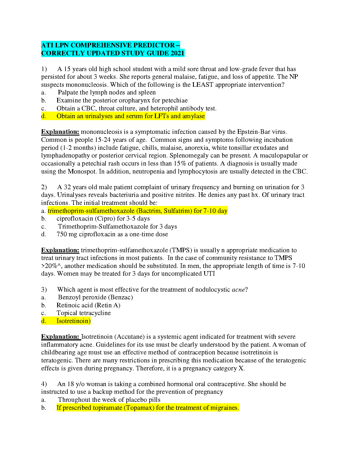 ATI LPN COMPREHENSIVE PREDICTOR – CORRECTLY UPDATED STUDY GUIDE RATED A+. DOWNLOAD on www.hackedexams.com INSTANTLY.