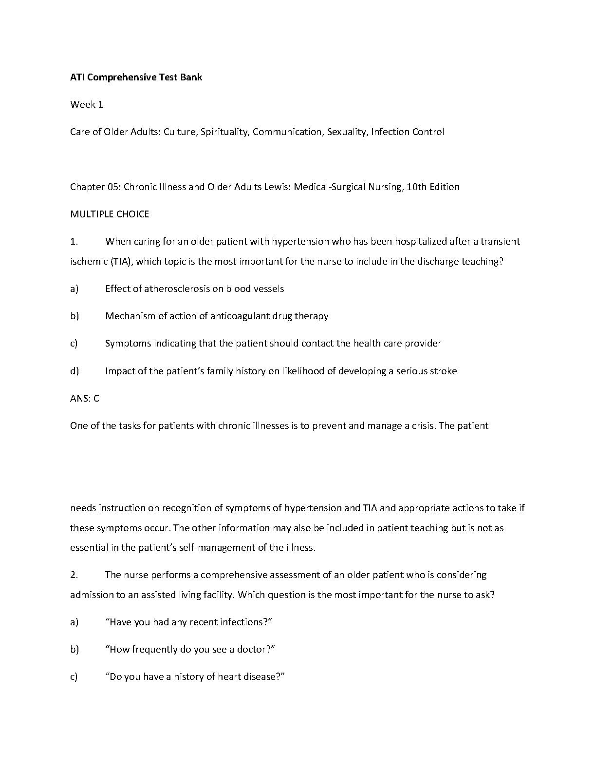 ATI Comprehensive Test Bank ALL SECTIONS AND WEEKS COVERED RATED A+