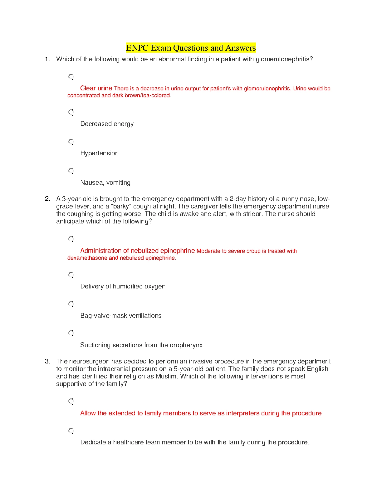 ENPC Exam Questions and Answers 100% CORRECT AND VERIFIED . DOWNLOAD on www.hackedexams.com INSTANTLY.