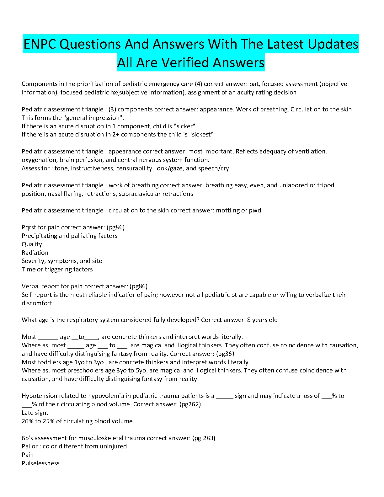 ENPC Questions And Answers With The Latest Updates All Verified Answers 100% LATEST SOLUTION . DOWNLOAD on www.hackedexams.com INSTANTLY.