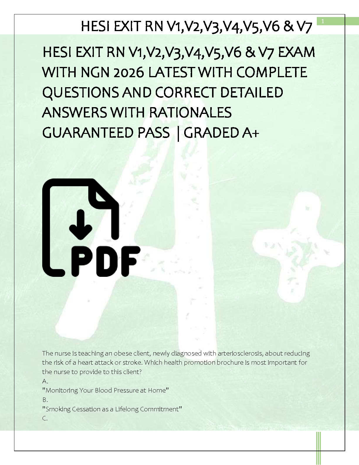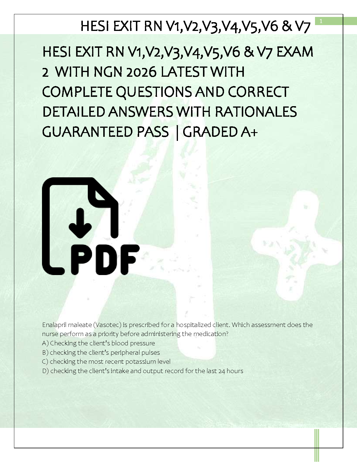 HackedExams is the website to download all resources for students who want to pass their exams on their first attempt. Our website offers all exam materials, including practice questions with answers, test banks, study guides, notes, summaries, and more for nursing, computer science, biology, psychology, law, and others. With resources from popular exam bodies like ATI, AQA, OCR, Edexcel, Comptia, Azure, and more, you'll easily find everything you need to get certified. Avoid resitting exams; trust in HackedExams.com to give you the resources to pass on your first attempt. Get access to exams from 2019 to 2023 and start your path to success today. "Avoid resits, get certified within days, and pass your exams on your first attempt."