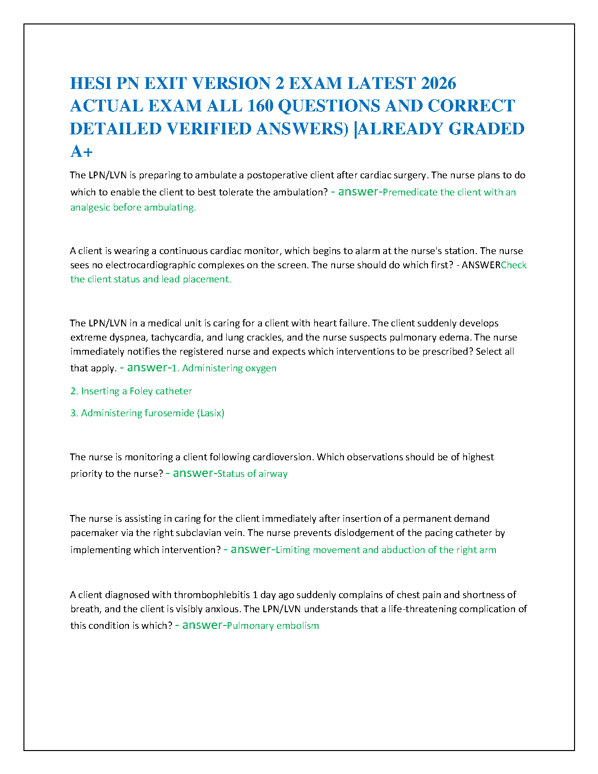 HESI RN EXIT EXAM COMPREHENSIVE V2- EXAM COMPLETE SOLUTION RATED A+