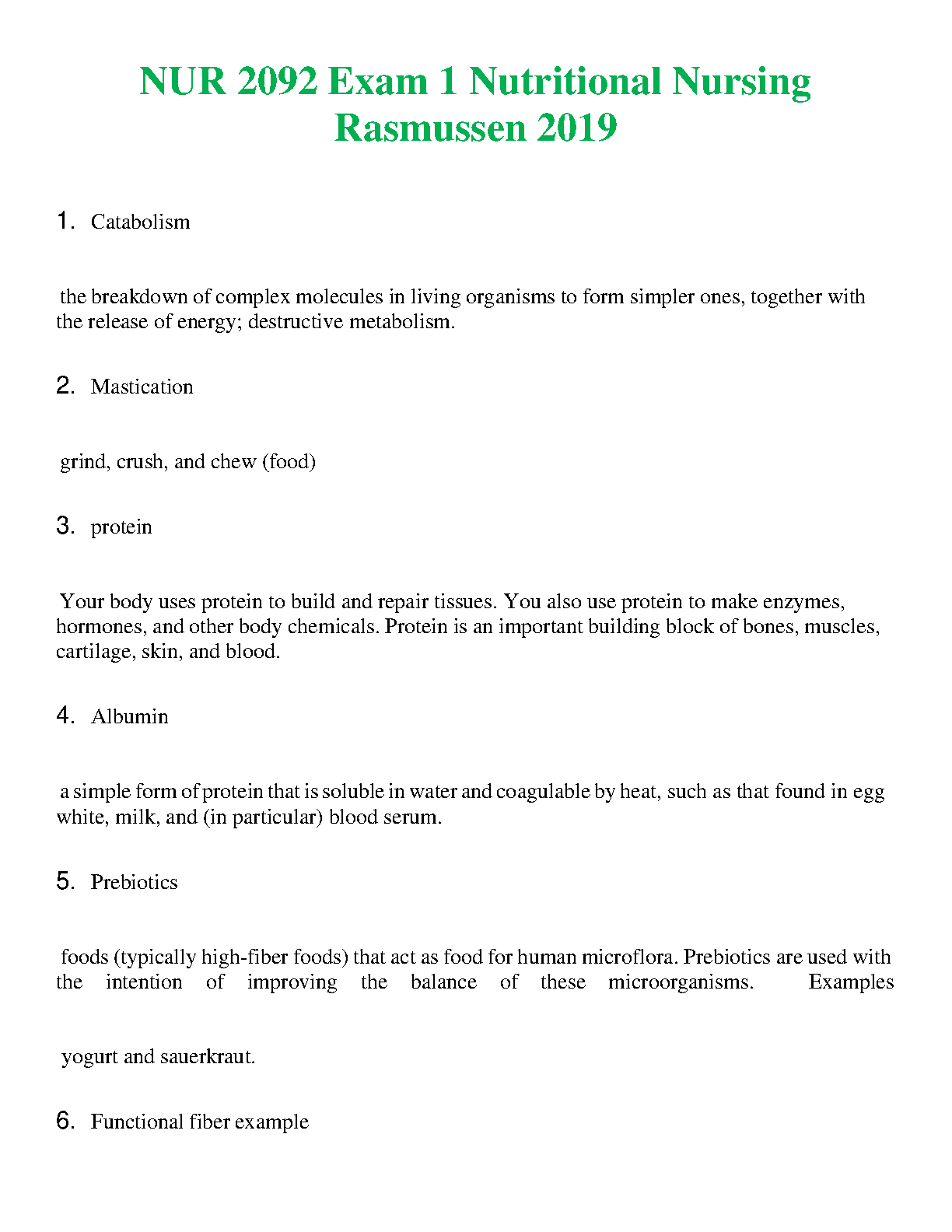 Ace your NUR 2092 Exam 1 with this comprehensive study guide covering key concepts in Nutritional Nursing from Rasmussen's 2019 edition. This resource helps you master catabolism, mastication, protein function, albumin, prebiotics, and functional fiber. Pass your exam on the first try and avoid resits!