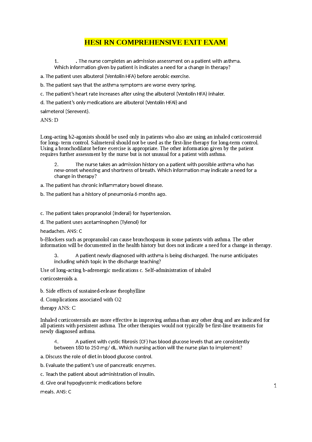 HESI RN COMPREHENSIVE EXIT EXAM COMPLETE SOLUTION RATED A+ BRAND NEW!!!