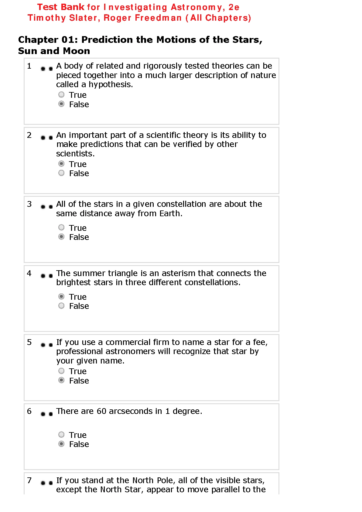 Test Bank for Investigating Astronomy, 2e Timothy Slater, Roger Freedman (All Chapters)