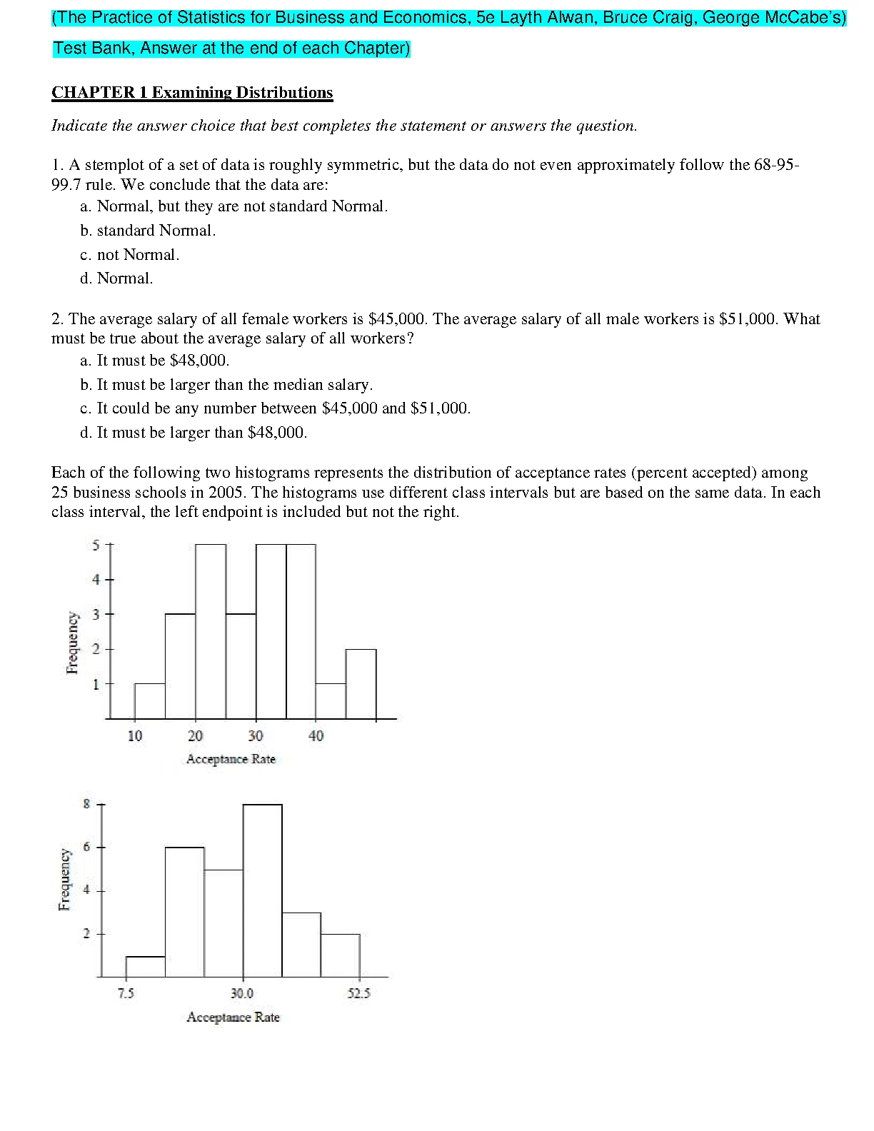 (The Practice of Statistics for Business and Economics, 5e Layth Alwan, Bruce Craig, George McCabe’s) Test Bank, Answer at the end of each Chapter). DOWNLOAD on www.hackedexams.com INSTANTLY.
