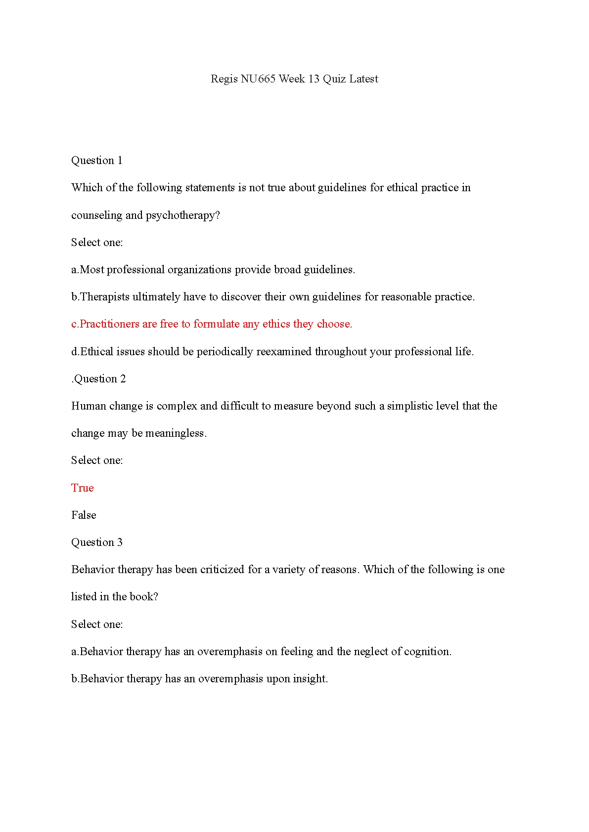 Regis NU665 Week 13 Quiz Latest UPDATE GRADED A+ FOR 2023/2024. DOWNLOAD on www.hackedexams.com INSTANTLY.