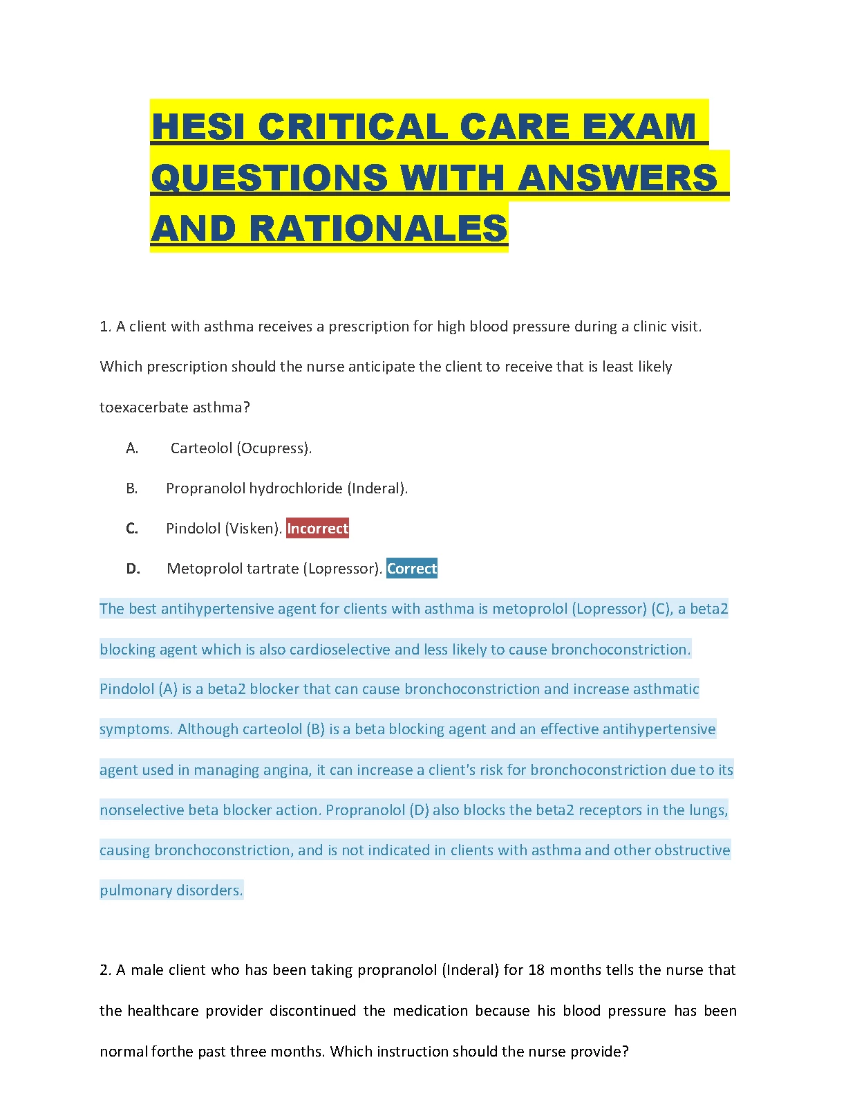 HESI CRITICAL CARE EXAM QUESTIONS WITH ANSWERS AND RATIONALES COMPLETE SOUTION. DOWNLOAD on www.hackedexams.com INSTANTLY.