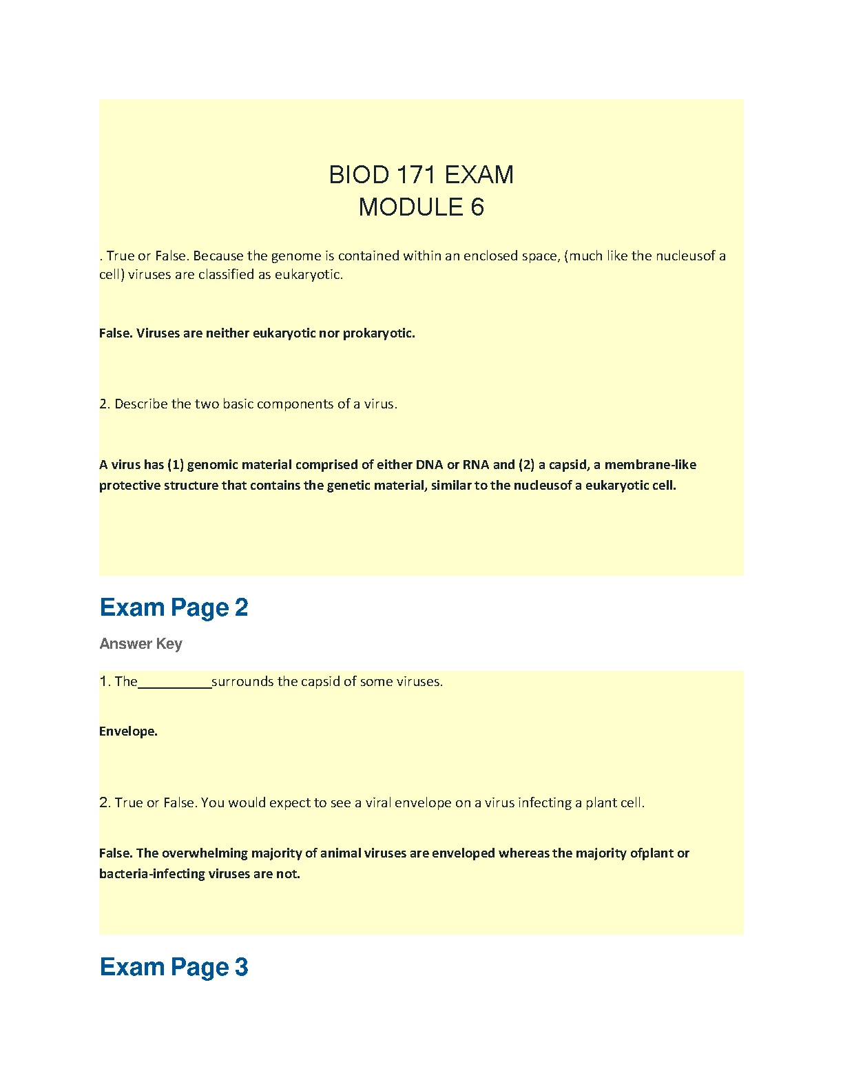BIOD 171 EXAM MODULE 6 RECENT UPDATE 2023