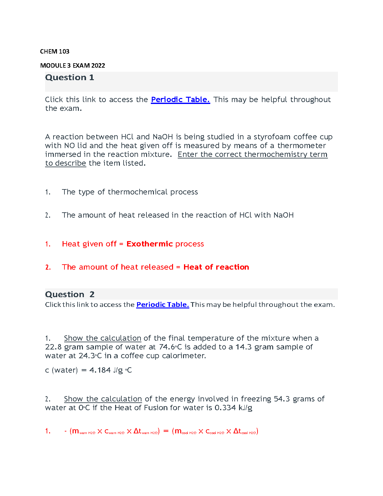 CHEM 103 MODULE 3 EXAM 2022/2023 RECENT SOLUTION GRADED A+