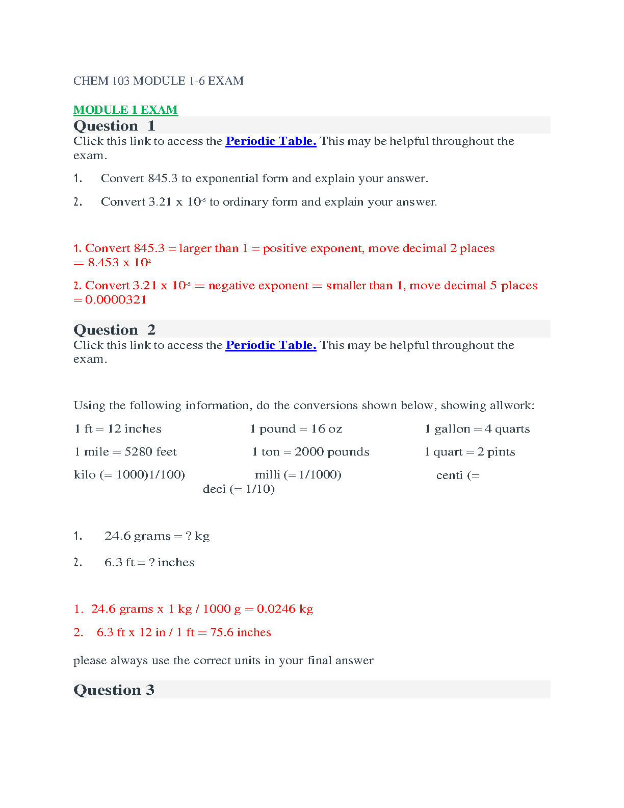 CHEM 103 MODULE 1-6 EXAM 100% ANSWERED CORRECTLY 2023/2024. DOWNLOAD on www.hackedexams.com INSTANTLY.