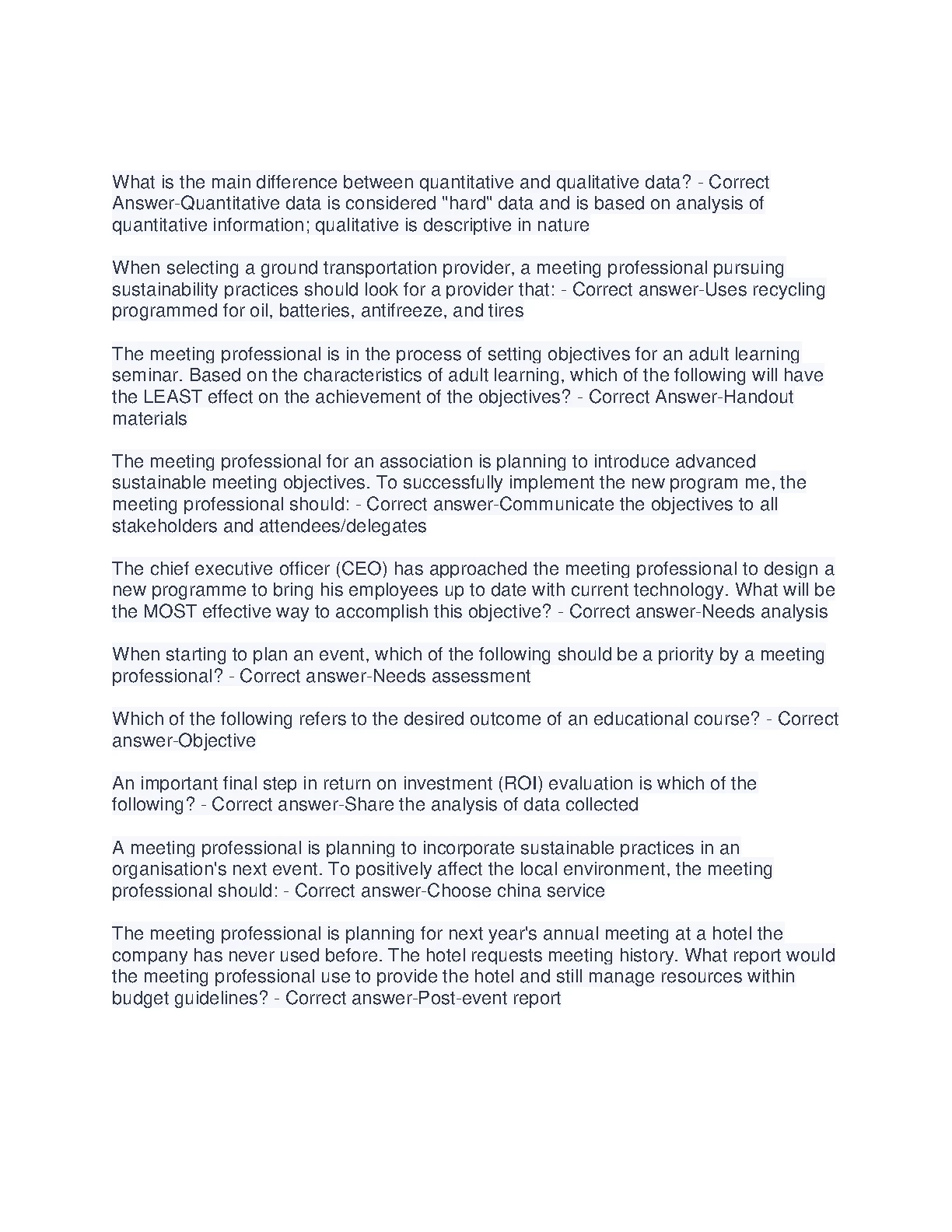 CMP - Certified Meeting Professional Exam with Verified Questions and Answers 2023. DOWNLOAD on www.hackedexams.com INSTANTLY.