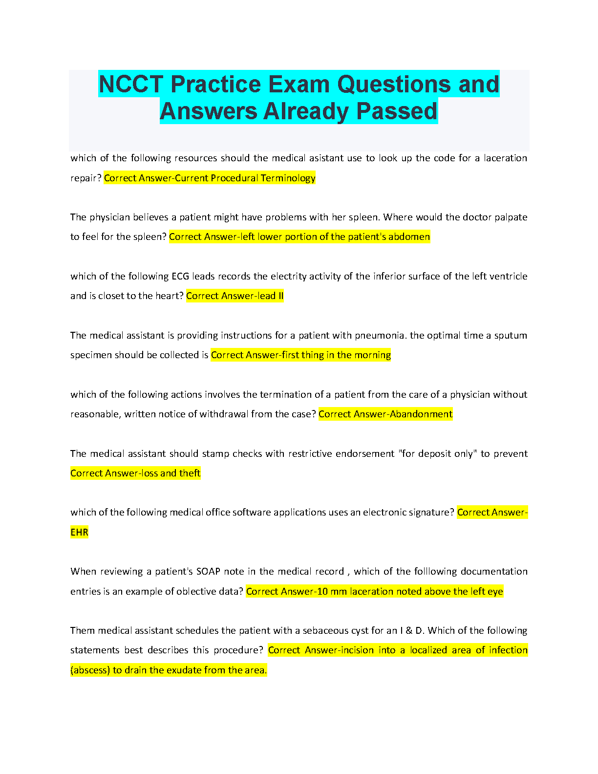 NCCT Practice Exam Questions and Answers Already Passed GRADED A+. DOWNLOAD on www.hackedexams.com INSTANTLY.